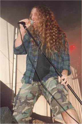 Donald: The band as a whole, I think, is not influenced by other music that we think...that we think is good enough to put in our music. We don't look at bands and say, "Man, this band's getting big, we need to kinda do something like this." We've been together for 10 years, and we have a very unique writing style from day one since we've been writing, and we've always stuck to that, which is listening to music which has actually nothing to do with our band and when we come down to write our own music. We listen to anything from rap to house music, techno, em, acid rock, country music. I listen to a wide variety of music, but one of the varieties I wouldn't say would be a heavy metal or a death metal band when I'm at home listening to my stereo, or in the bus listening to headphones. I stay away from it because I'm doing it all year long, I hear it every day of my life when I'm on the road. I can't say that a band that's real heavy is influencing me for the last album or is gonna influence me for writing songs for the new album. I think the thing that influences us has something to do with music but it's things like this, when we get to come to a festival and play with bands we've never played with before, play in front of some kids we've never played in front of before, and hope that these kids are going to enjoy Obituary. That's an influence for Obituary as a whole, to really keep their eyes and minds set on being influenced in the right way to write new music, I think.