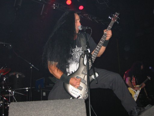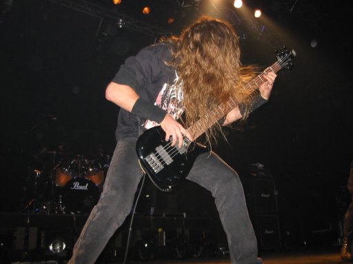 Apart from Kreator (...) and Cannibal Corpse, the biggest reason for my wanting to attend this year's XMas Metal Fest was Nile. These guys have made wonderfully challenging, heavy-as-fuck music for two consecutive albums, and I like them a lot. I'd never seen them play, so this was my chance. They kicked off with "Black Seeds of Vengeance", and from that moment until the very end hurled at the audience their typical brand of high-standard, very heavy music. I don't remember many of the tracks they played, but I think it's safe to say that a good time was had by all, including me. When they did "Ramses Bringer of War" a wide grin appeared on my face, signalling my personal start of Enjoyment for the rest of the evening. A very, very cool and majestic track (based on Gustav Holst's "Mars Bringer of War", but much much heavier). Unlike some other bands on the line-up, Nile was as full of energy as if this was the first time they played in front of anything other than a pub crowd. The set lasted too short, alas.